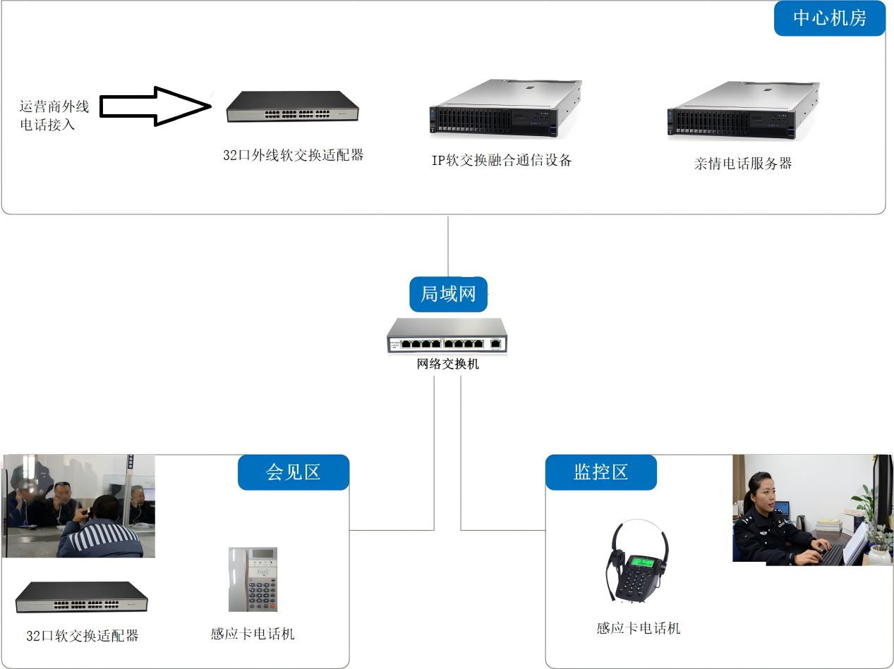 系統是為監獄、看守所、戒毒所等司法公安用戶打造的面向下一代網絡通信技術、統一融合通信平臺(語音、視頻、傳真、即時通訊等)、安全穩定可靠、業務高度集成化的親情電話監控管理系統,系統嚴格控制服刑人員只能撥打直系親屬電話,撥打電話過程警察可以全程音頻監控,并實時進行錄音,以后可以隨時查詢和回放通話錄音。
