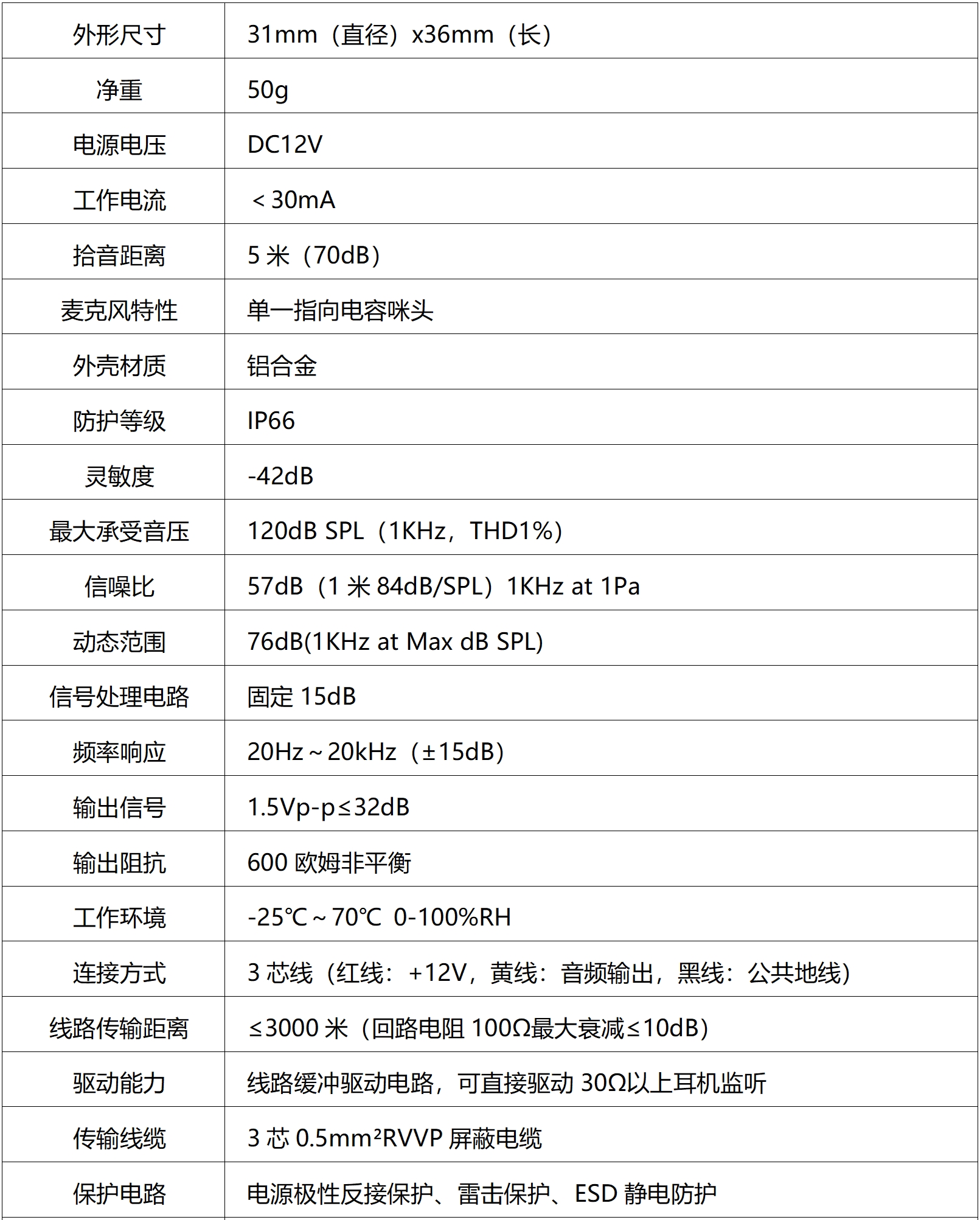 拾音器內置雷擊保護、電源極性反轉保護。