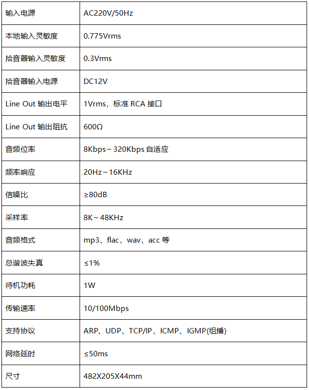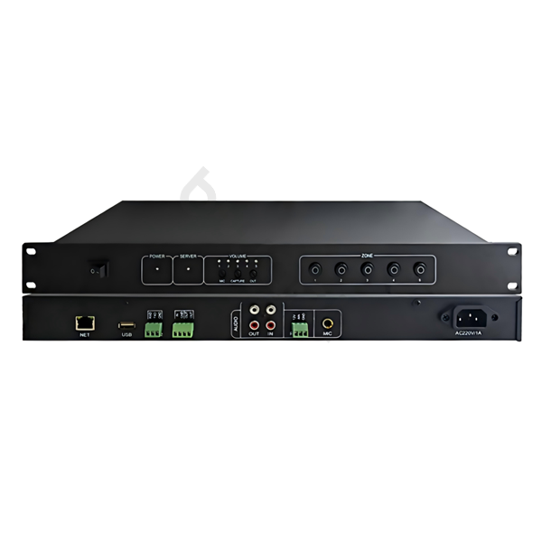 具備2路蓮花頭音頻輸入接口,2路蓮花頭音頻輸出接口,支持音頻編解碼功能,支持網(wǎng)絡(luò)音頻解碼輸出,也可通過音頻輸入接口外接CD機(jī)、收音機(jī)等音頻信號進(jìn)行數(shù)字音頻編碼,并通過網(wǎng)絡(luò)遠(yuǎn)程發(fā)送到指定的廣播區(qū)域(設(shè)備)進(jìn)行廣播
